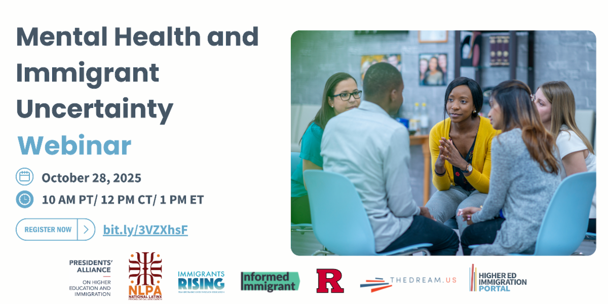Both the webinar and the guide are collaborative efforts sponsored by the Presidents Alliance on Higher Education and Immigration and the National Latinx Psychological Association.