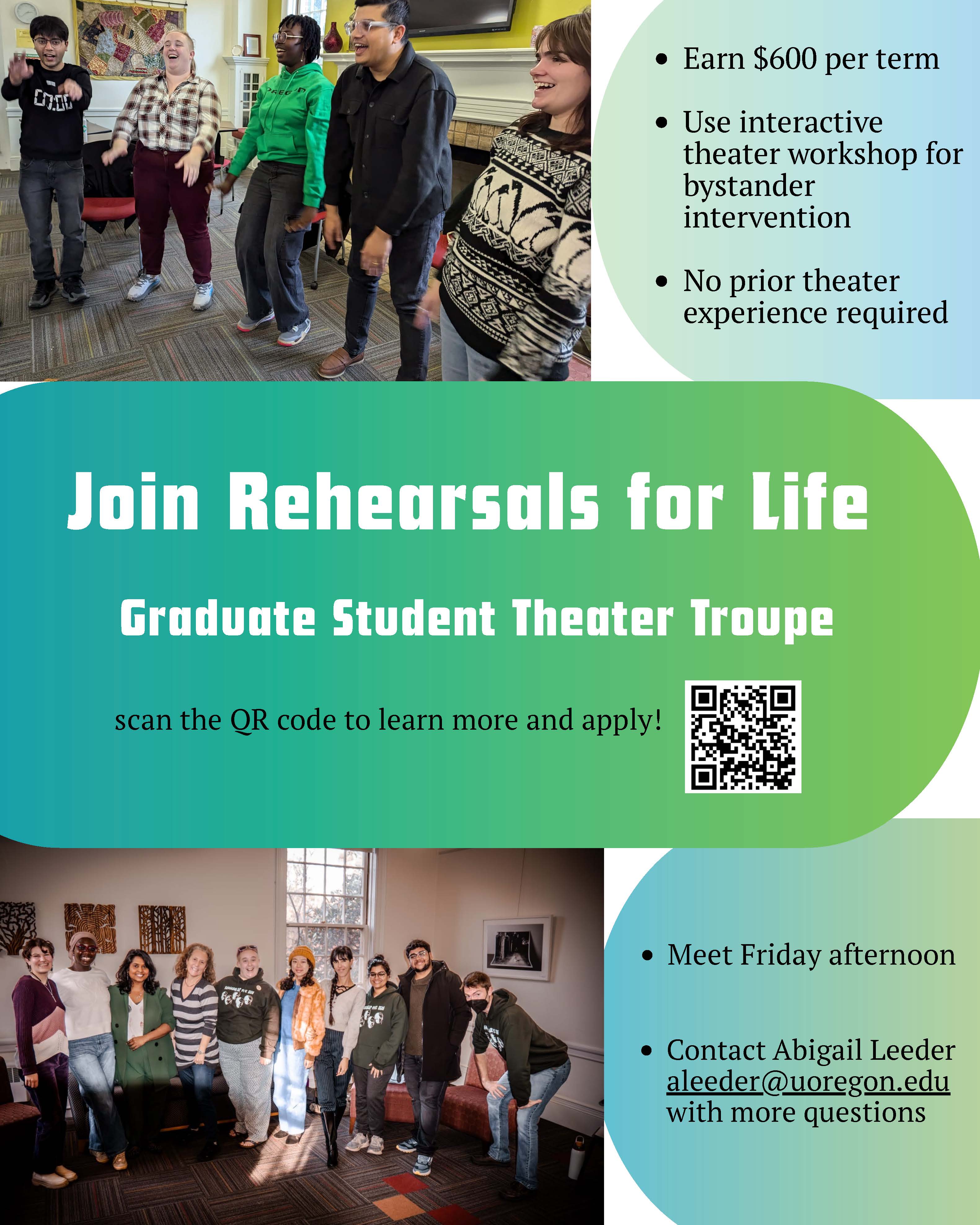 Subject: FW: "Rehearsals for Life" is looking for graduate students to join us starting Spring Term 2026! - Please forward!