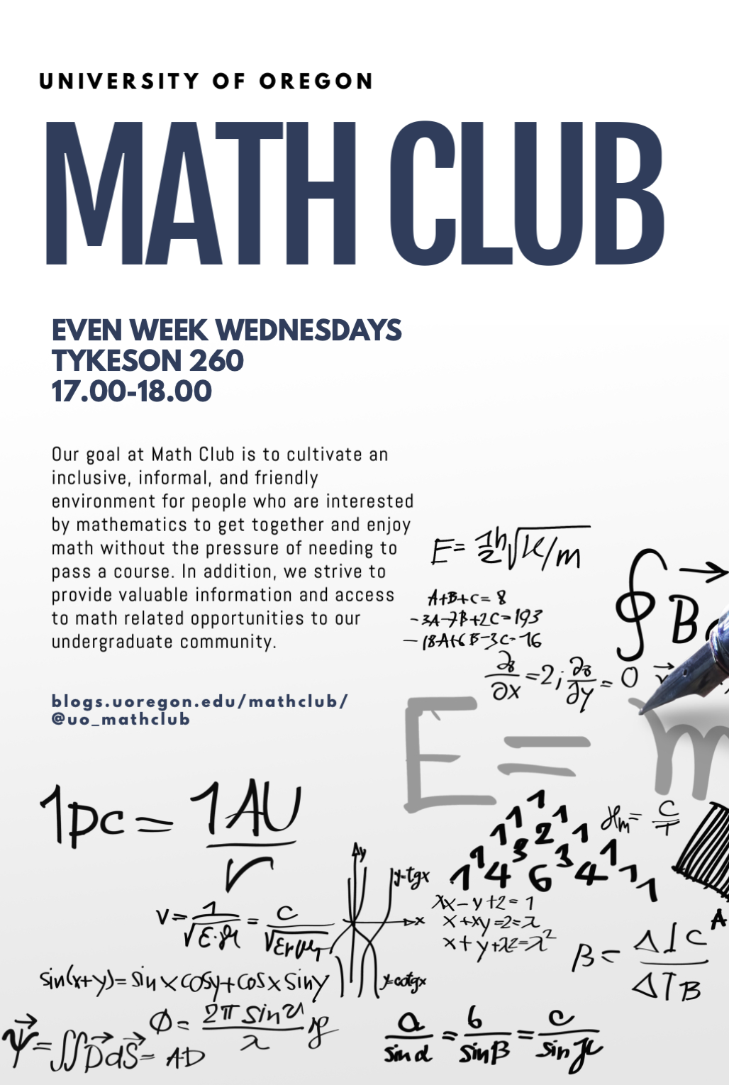 We hope you had a nice summer and great start to the term! Our first meeting of the term will be this Wednesday, 10/8, at 5pm in Tykeson 260. As always, there will be free pizza. Hope to see you there!