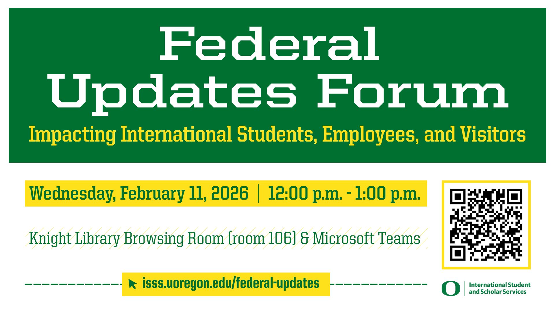 The flyer (attached) for the Forum next week on Immigration Issues, hosted by International Students and Scholars Services.